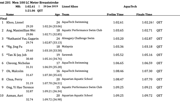 2019 Singapore Neo Garden National Championships: Lionel Khoo Shatters Meet Record For Second Time Today