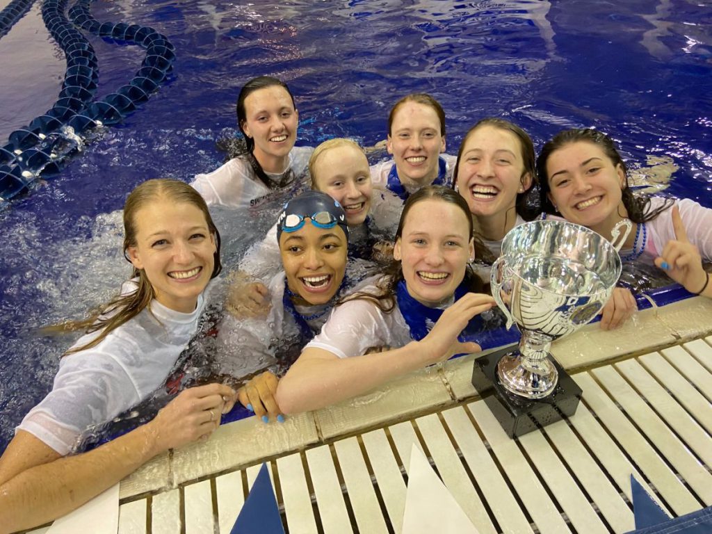 Like the boys, Cambridge began their winning ways as Sophie Brison (25.82), Jayla Brown (29.80), Claire Kerber (25.41), and Abigail Grottle (23.62) won the opening 4×50 medley relay in 1:44.65 – four seconds ahead of the field. Grottle (52.32), Kerber (55.29), Brown (53.92), and Brison (50.21) also won the 4×100 free relay in 3:31.74.