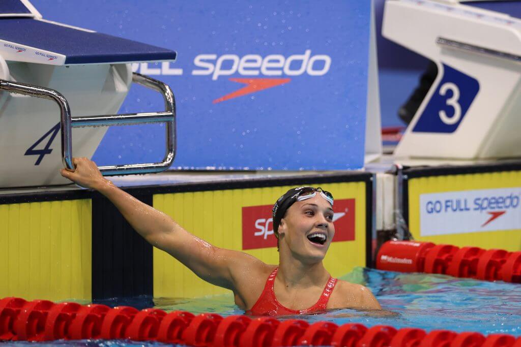 It begs the question of what Evans will do in the 100 in which she’s twice posted 1:05.46 this year, 0.09 off her national record of 1:05.37.