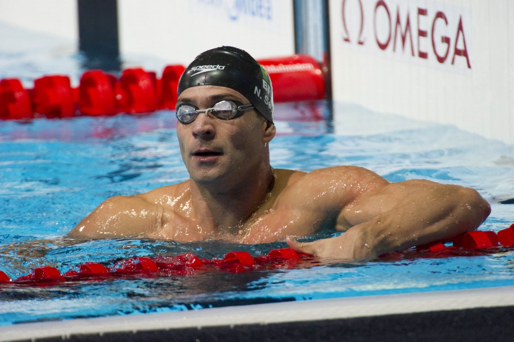 The Americans were led by Anthony Ervin, who won the 50 free with a 22.43. Brazil’s Henrique Martins was a distant second with a 23.10. In the 50 backstroke, former world champion Gerhard Zandberg gave the South Africans a win with a narrow victory over American David Plummer. Zandberg took the win in 25.19 to Plummer’s 25.26. Notably, Plummer was eighth at worlds with a 24.96. Zandberg had announced his retirement from competitive swimming after disagreements with his country’s swimming federation in 2013, but came back for the 2014 nationals.