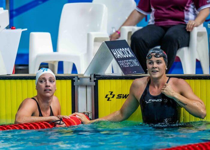 IN other events, World Champion Meg Harris (Rackley) added the 50m freestyle to her wins in the 100 and 200m freestyle completing a rare treble, winning the title in an impressive 24.48 from fellow Olympic golden girl Shayna Jack (St Peters Western) 24.79 and Milla Jansen (Bond) 25.14.