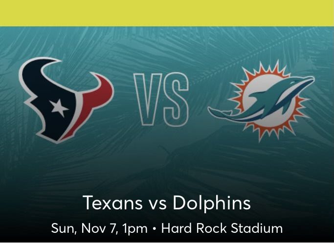 Item 309: TWO NFL Tickets – Dolfins vs Texans