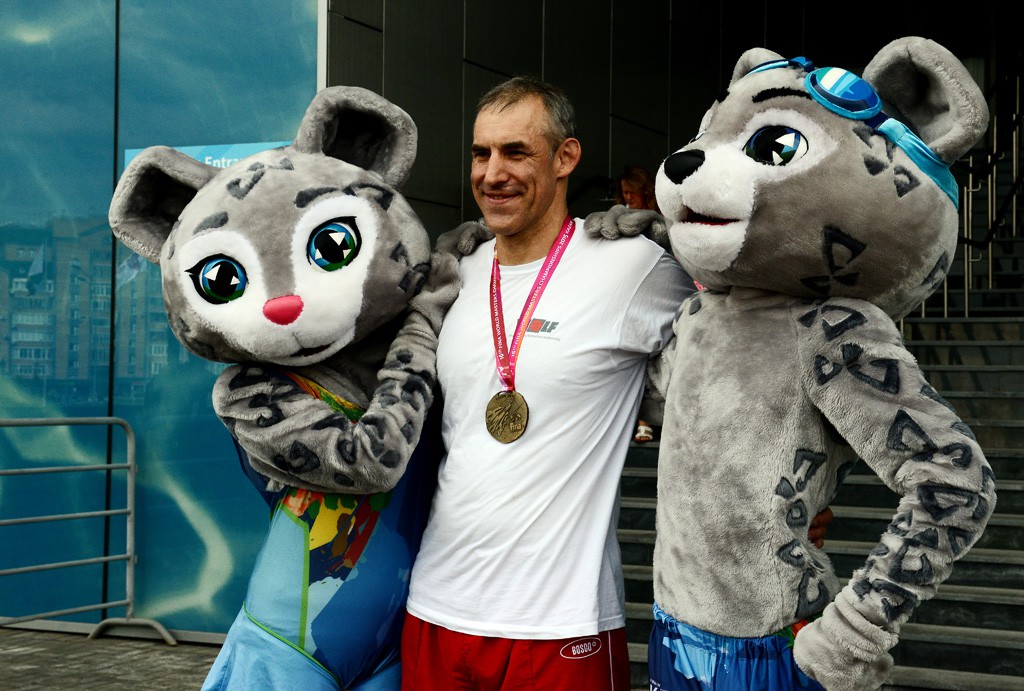 Russia’s Vitalij Borisov of Sura turned in a meet-record time of 56.20 in the men’s 25-29 100-meter back.